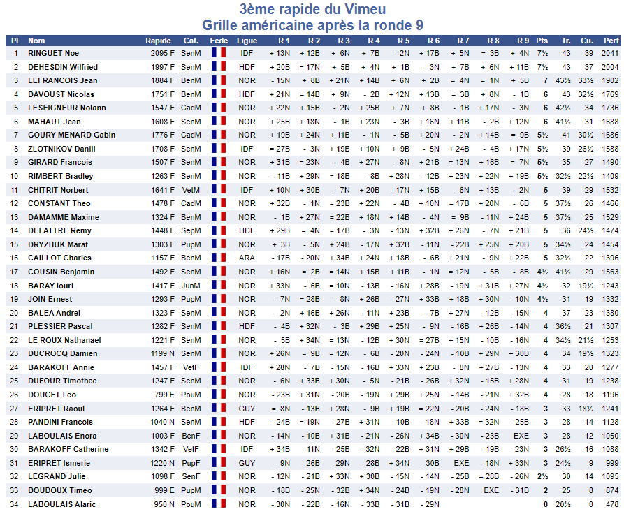 Après 9 rondes très disputées, c’est finalement Noé Ringuet du club de la Tour de Juvisy qui s’impose en