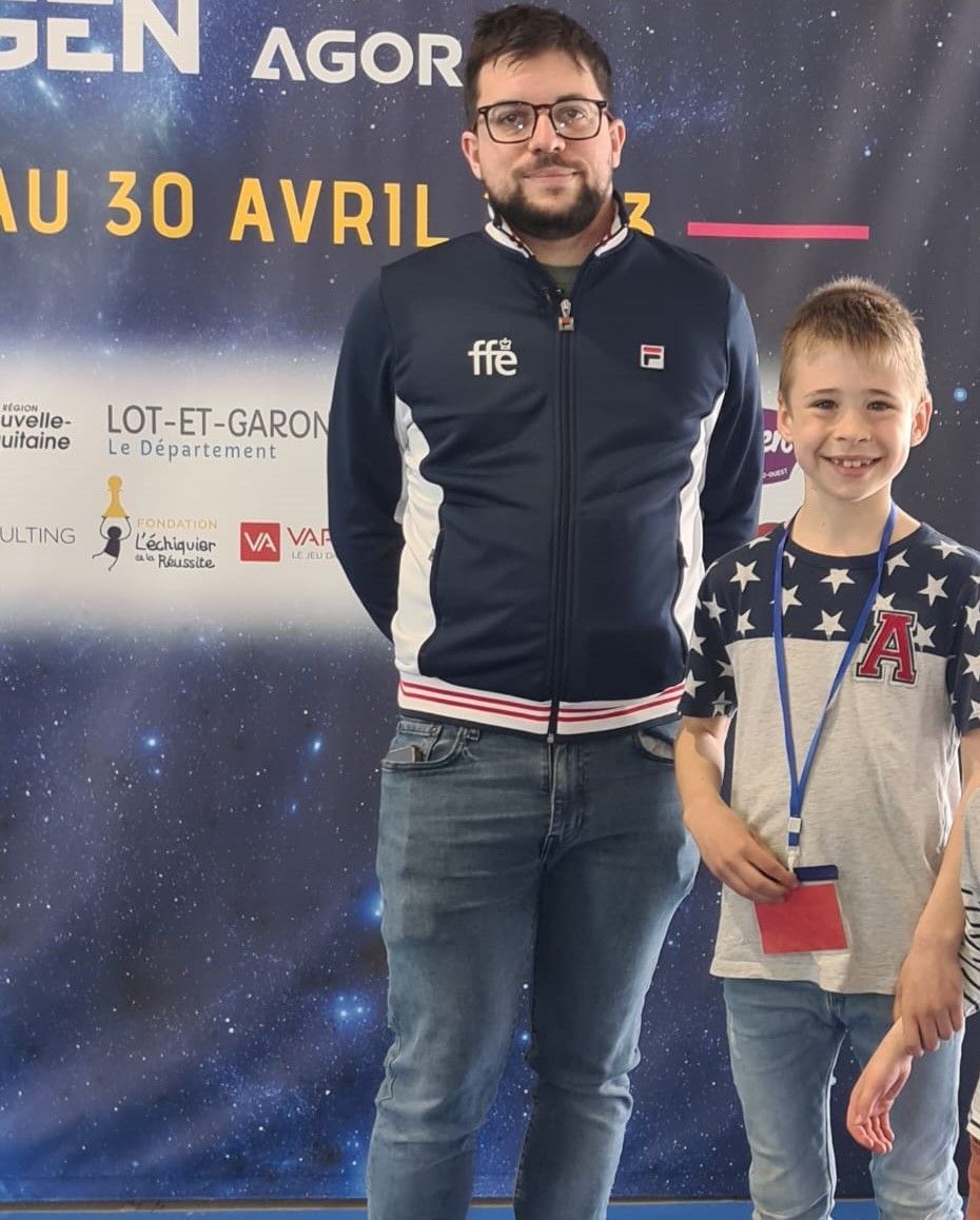 Le Pôle Echecs du Vimeu était représenté lors de cette compétition par le jeune Alexis Querné, engagé dans la catégorie U8. Pour sa première participation, Alexis réalise une performance très honorable en inscrivant le score de 4,5 points sur 9, ce qui lui permet de se hisser à la 64ème place du classement final sur 135 participants ! Une expérience qui aura été riche d'enseignements pour lui, lui donnant l'occasion de disputer un grand nombre de parties lentes, d'approfondir ses ouvertures et de forger son mental 💪 Lors de ces championnats de France, Alexis a même eu la chance de faire la rencontre du champion du monde de blitz Maxime Vachier-Lagrave 😍